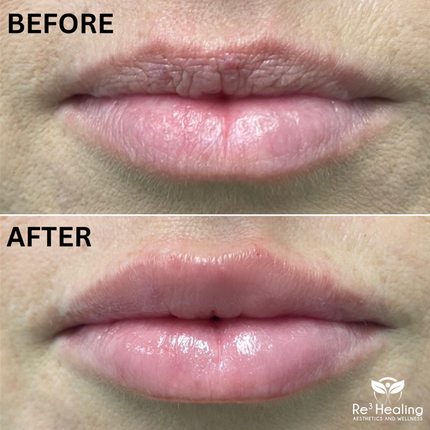 This Lip Transformation included: 1 syringe of HA filler spaced over two treatments, to delicately add volume while looking natural. Picture taken immediately after injection.